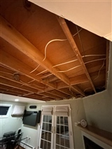 This Island Park, NY project involved interior demolition following a water loss that affected the home’s lower-level living area and ceiling assemblies. After moisture damage was identified, our team carefully removed sections of the ceiling and compromised materials to expose the framing and allow proper drying and inspection. Opening the ceiling structure provided contractors access to wiring, insulation, and structural components that needed to be evaluated and restored after the water intrusion.