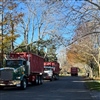 As demolition progressed, multiple trucks were staged and rotated to remove debris continuously, allowing the project to move quickly without clutter or delays. This efficient hauling operation is reflected in the final images, showing a clean, level site once the structure was fully removed. By combining safe demolition practices with an expedited debris removal process, the property was cleared on schedule and left ready for its next phase—demonstrating the efficiency and professionalism Goodelman Demolition brings to every job.