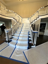 This interior demolition and prep project in Mill Neck, NY required careful containment and precision work to protect the finished areas of the home while opening walls and floors for renovation. Our team fully masked and protected staircases, railings, flooring, and entryways, installed dust barriers and negative-air containment, and safely removed select wall sections to expose framing and utilities for the next phase of construction. Specialized floor protection and debris control measures were used throughout the space to keep the rest of the home clean and undisturbed, allowing renovation work to move forward efficiently and safely without disrupting occupied areas of the property.